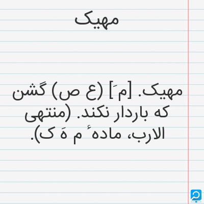 مهیک. [م َ] (ع ص) گشن که باردار نکند. (منتهی الارب، ماده ٔ م هَ ک).