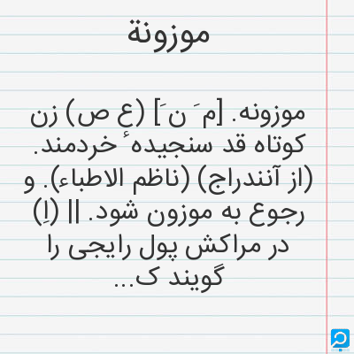 موزونه. [م َ ن َ] (ع ص) زن کوتاه قد سنجیده ٔ خردمند. (از آنندراج) (ناظم الاطباء). و رجوع به موزون شود. || (اِ) در مراکش پول رایجی را گویند که معادل بیست و چهار فلوس است. (ناظم الاطباء).