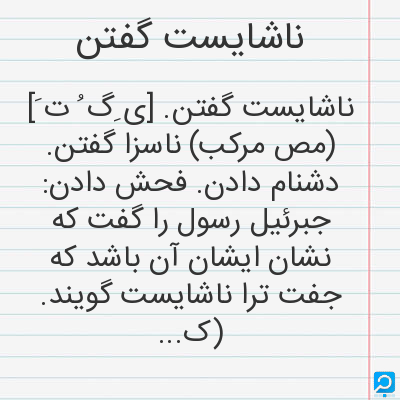 ناشایست گفتن. [ی ِگ ُ ت َ] (مص مرکب) ناسزا گفتن. دشنام دادن. فحش دادن: جبرئیل رسول را گفت که نشان ایشان آن باشد که جفت ترا ناشایست گویند. (کتاب النقض ص 431).
