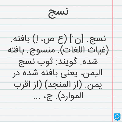نسج در فرهنگ لغات ها (دهخدا،معین و ... ) + سایر منابع اطلاعاتی