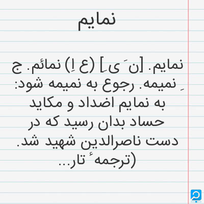 نمایم در فرهنگ لغات ها (دهخدا،معین و ... ) + سایر منابع اطلاعاتی
