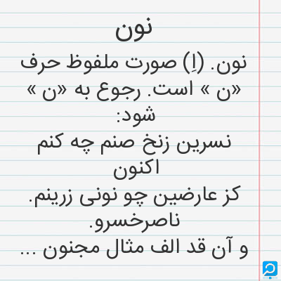 نون در فرهنگ لغات ها (دهخدا،معین و ... ) + سایر منابع اطلاعاتی