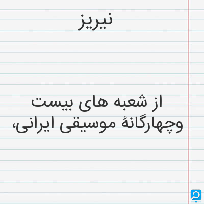 پارسی تازی گشته نوروز (اسم) یکی از شعب بیست و چهار گانه موسیقی و آن بر دو نوع است: یا نیریز صغیر. شامل پنج نغمه است و با ((راست)) و ((حجازی)) متناسب میباشد. یا نیریز کبیر. شامل هشت نغمه است و با ((حجازی)) متناسب میباشد. توضیح نیزیز آوازیست ایرانی که در راست پنجگاه و همایون هر دو معمولست.