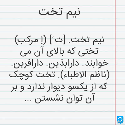 نیم تخت در فرهنگ لغات ها (دهخدا،معین و ... ) + سایر منابع اطلاعاتی