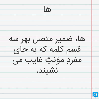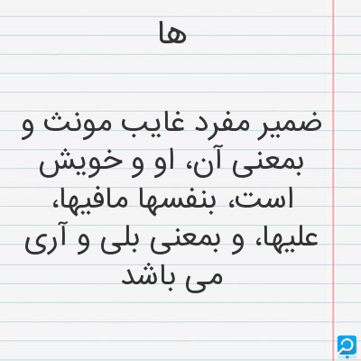 ها، ضمیر متصل بهر سه قسم کلمه که به جای مفردِ مؤنثِ غایب می نشیند،