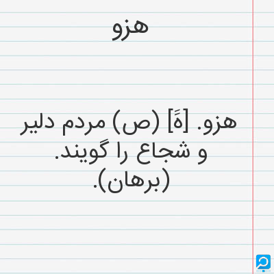 هزو. [هََ] (ص) مردم دلیر و شجاع را گویند. (برهان).