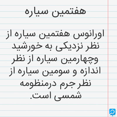 اورانوس هفتمین سیاره از نظر نزدیکی به خورشید وچهارمین سیاره از نظر اندازه و سومین سیاره از نظر جرم درمنظومه شمسی است.