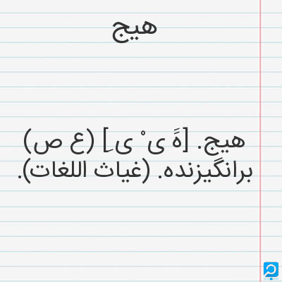 هیج. [هََ ی ْ ی ِ] (ع ص) برانگیزنده. (غیاث اللغات).