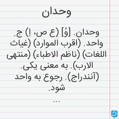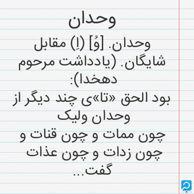 وحدان در فرهنگ لغات ها (دهخدا،معین و ... ) + سایر منابع اطلاعاتی