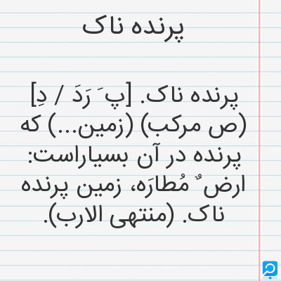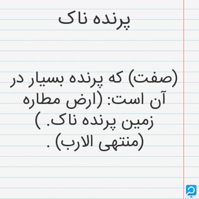 پرنده ناک. [پ َ رَدَ / دِ] (ص مرکب) (زمین...) که پرنده در آن بسیاراست: ارض ٌ مُطارَه، زمین پرنده ناک. (منتهی الارب).