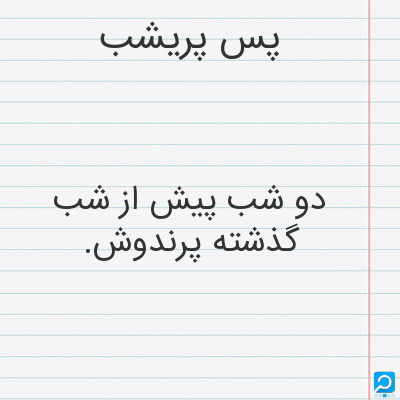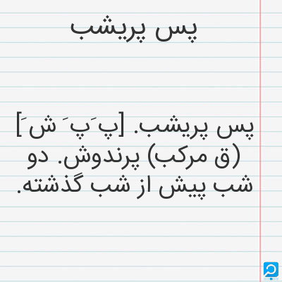 پس پریشب در فرهنگ لغات ها (دهخدا،معین و ... ) + سایر منابع اطلاعاتی