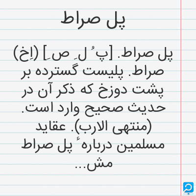 پل صراط در فرهنگ لغات ها (دهخدا،معین و ... ) + سایر منابع اطلاعاتی