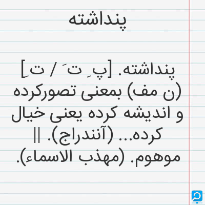 پنداشته در فرهنگ لغات ها (دهخدا،معین و ... ) + سایر منابع اطلاعاتی