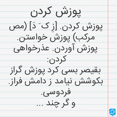 پوزش کردن در فرهنگ لغات ها (دهخدا،معین و ... ) + سایر منابع اطلاعاتی
