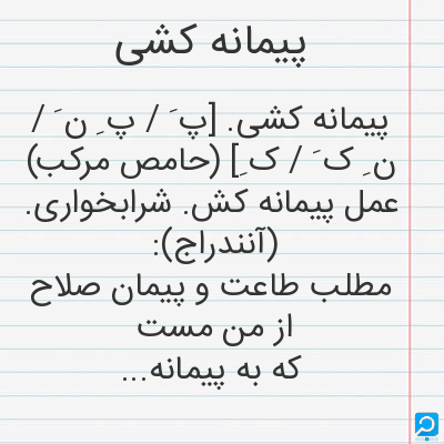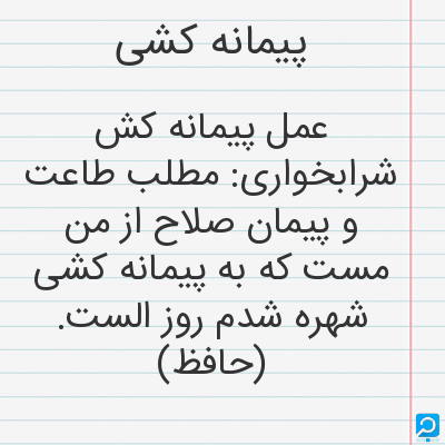 عمل پیمانه کش شرابخواری: مطلب طاعت و پیمان صلاح از من مست که به پیمانه کشی شهره شدم روز الست. (حافظ)