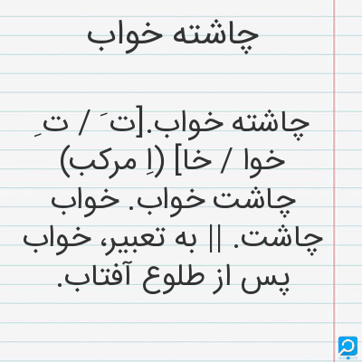 چاشته خواب.[ت َ / ت ِ خوا / خا] (اِ مرکب) چاشت خواب. خواب چاشت. || به تعبیر، خواب پس از طلوع آفتاب.