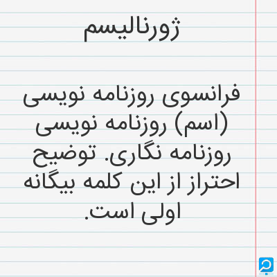 فرانسوی روزنامه نویسی (اسم) روزنامه نویسی روزنامه نگاری. توضیح احتراز از این کلمه بیگانه اولی است.