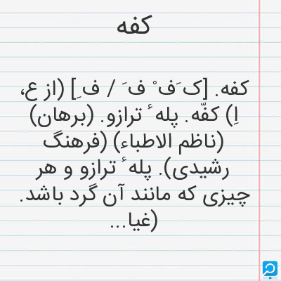 کفه در فرهنگ لغات ها (دهخدا،معین و ... ) + سایر منابع اطلاعاتی