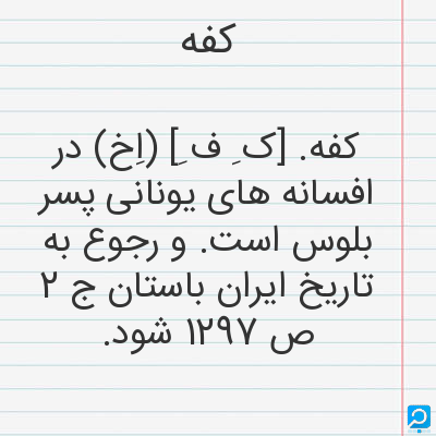 کفه. [ک ِ ف ِ] (اِخ) در افسانه های یونانی پسر بلوس است. و رجوع به تاریخ ایران باستان ج 2 ص 1297 شود.