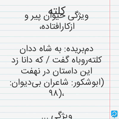 دمبریده: به شاه ددان کلتهروباه گفت / که دانا زد این داستان در نهفت (ابوشکور: شاعران بیدیوان: ۹۸)،