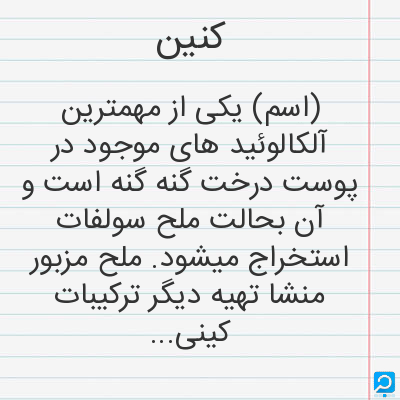 (اسم) یکی از مهمترین آلکالوئید های موجود در پوست درخت گنه گنه است و آن بحالت ملح سولفات استخراج میشود. ملح مزبور منشا تهیه دیگر ترکیبات کینین است. کینین را بعنوان تب بر و جهت جلوگیری از بروز تبهای نوبه یی خصوصا مالاریا بکار میبرند و در بعض تبها که با کینین معالجه نشوند هنوز هم پوست درخت گنه گنه را ترجیح دهند.
