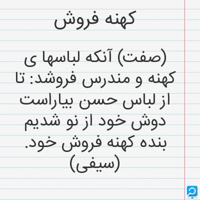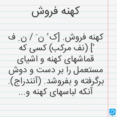 کهنه فروش در فرهنگ لغات ها (دهخدا،معین و ... ) + سایر منابع اطلاعاتی