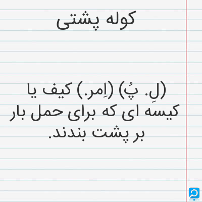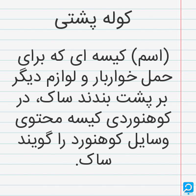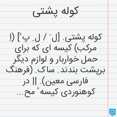کوله پشتی در فرهنگ لغات ها (دهخدا،معین و ... ) + سایر منابع اطلاعاتی