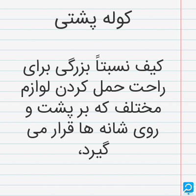 کیف نسبتاً بزرگی برای راحت حمل کردن لوازم مختلف که بر پشت و روی شانهها قرار میگیرد،