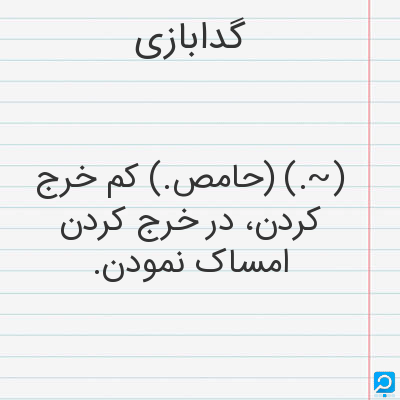 گدابازی. [گ َ / گ ِ] (حامص مرکب) امساک در خرج. خست نمودن. به قدرضرورت خرج نکردن: گدابازی درآوردن. گدابازی کردن.