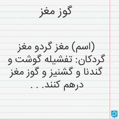 (اسم) مغز گردو مغز گردکان: تفشیله گوشت و گندنا و گشنیز و گوز مغز درهم کنند. . .