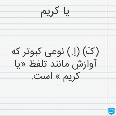 (کَ) (اِ.) نوعی کبوتر که آوازش مانند تلفظ «یا کریم » است.
