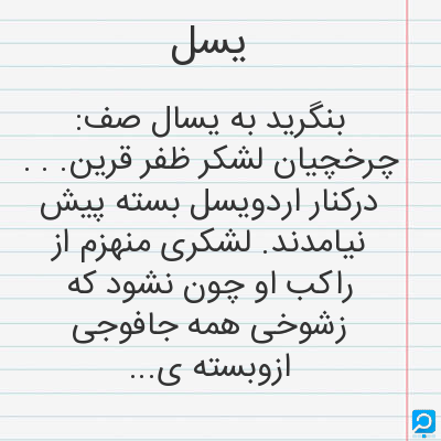 بنگرید به یسال صف: چرخچیان لشکر ظفر قرین. . . درکنار اردویسل بسته پیش نیامدند. لشکری منهزم از راکب او چون نشود که زشوخی همه جافوجی ازوبسته یسل. (سنجرکاشی)