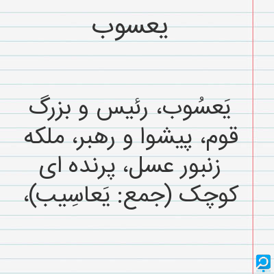 یَعسُوب، رئیس و بزرگ قوم، پیشوا و رهبر، ملکه زنبور عسل، پرنده ای کوچک (جمع: یَعاسِیب)،