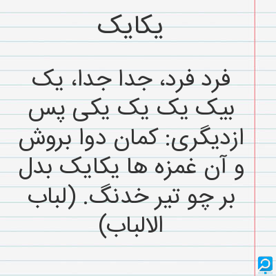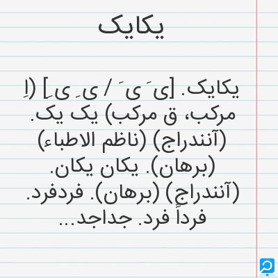 یکایک در فرهنگ لغات ها (دهخدا،معین و ... ) + سایر منابع اطلاعاتی