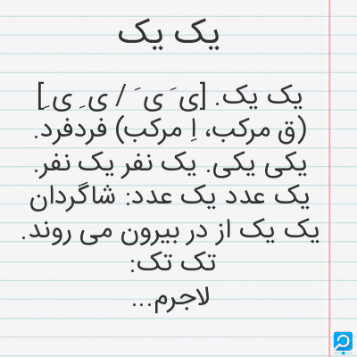 یک یک در فرهنگ لغات ها (دهخدا،معین و ... ) + سایر منابع اطلاعاتی