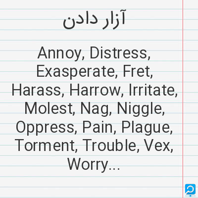 Annoy, Distress, Exasperate, Fret, Harass, Harrow, Irritate, Molest, Nag, Niggle, Oppress, Pain, Plague, Torment, Trouble, Vex, Worry
