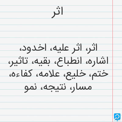 اثر، اثر علیه، اخدود، اشاره، انطباع، بقیه، تاثیر، ختم، خلیع، علامه، کفاءه، مسار، نتیجه، نمو