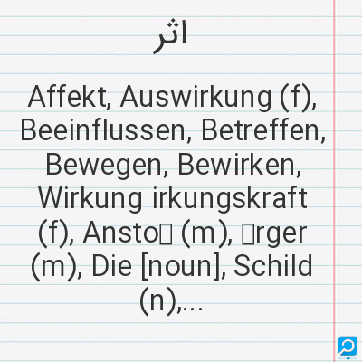 Affekt, Auswirkung (f), Beeinflussen, Betreffen, Bewegen, Bewirken, Wirkung irkungskraft (f), Anstoß (m), Ärger (m), Die [noun], Schild (n), Spur, Unterschreiben, Zeichen (n)