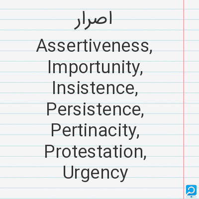 Assertiveness, Importunity, Insistence, Persistence, Pertinacity, Protestation, Urgency