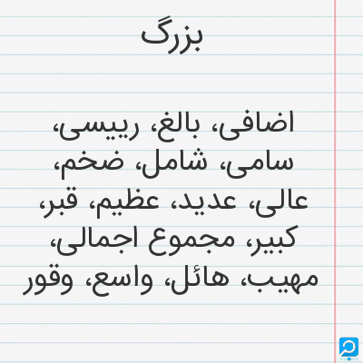 اضافی، بالغ، رییسی، سامی، شامل، ضخم، عالی، عدید، عظیم، قبر، کبیر، مجموع اجمالی، مهیب، هائل، واسع، وقور