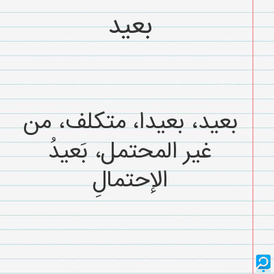 بعید، بعیدا، متکلف، من غیر المحتمل، بَعیدُ الإحتمالِ
