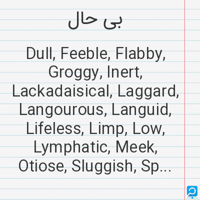 Dull, Feeble, Flabby, Groggy, Inert, Lackadaisical, Laggard, Langourous, Languid, Lifeless, Limp, Low, Lymphatic, Meek, Otiose, Sluggish, Spiritless, Supine, Wan