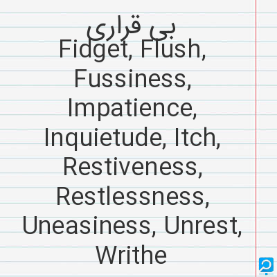 Fidget, Flush, Fussiness, Impatience, Inquietude, Itch, Restiveness, Restlessness, Uneasiness, Unrest, Writhe