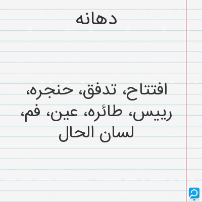 افتتاح، تدفق، حنجره، رییس، طائره، عین، فم، لسان الحال
