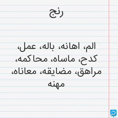 الم، اهانه، باله، عمل، کدح، ماساه، محاکمه، مراهق، مضایقه، معاناه، مهنه