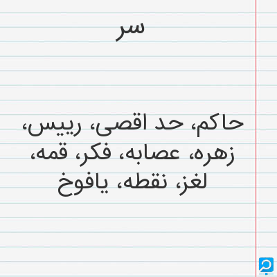 حاکم، حد اقصی، رییس، زهره، عصابه، فکر، قمه، لغز، نقطه، یافوخ