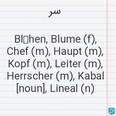 Blühen, Blume (f), Chef (m), Haupt (m), Kopf (m), Leiter (m), Herrscher (m), Kabal [noun], Lineal (n)