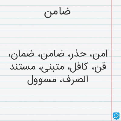 امن، حذر، ضامن، ضمان، قن، کافل، متبنی، مستند الصرف، مسوول