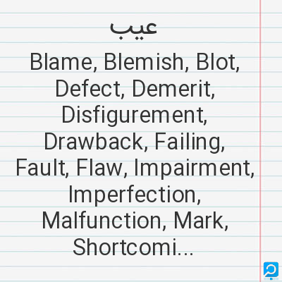 Blame, Blemish, Blot, Defect, Demerit, Disfigurement, Drawback, Failing, Fault, Flaw, Impairment, Imperfection, Malfunction, Mark, Shortcoming, Spot, Stain, Stigma, Taint, Tarnish, Wart