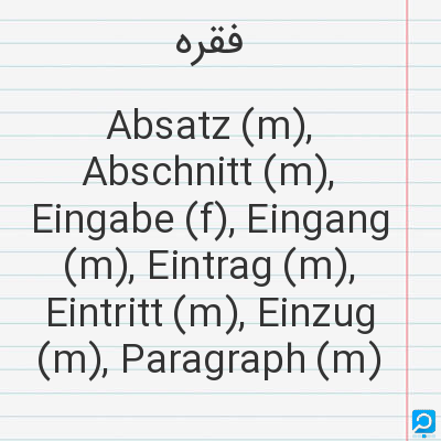 Absatz (m), Abschnitt (m), Eingabe (f), Eingang (m), Eintrag (m), Eintritt (m), Einzug (m), Paragraph (m)